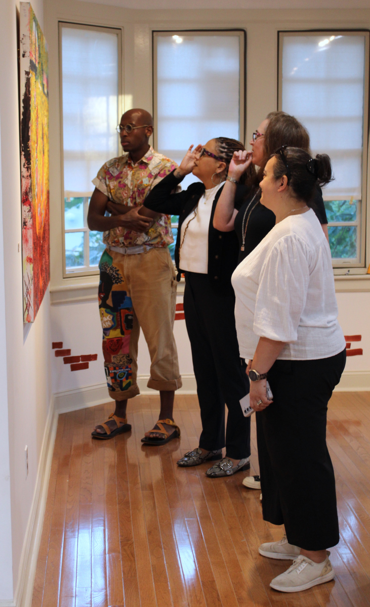 Inclusive Design: Our first floor is designed to be inclusive and ensure accessibility for all. Approachable Entrance: Our accessible entrance is in the back of the house. There is a ramp for whoever needs it. If possible, please email us at [email protected] in advance of your visit so we can ensure that the gallery sitter is aware that this entrance will be used. Accessible Restroom: We offer two accessible gender-neutral bathroom for the convenience of all visitors. Wide Walkways: Our walkways are wide enough to accommodate wheelchair users, ensuring smooth and easy navigation. Rest areas: There are benches and seating throughout the house for those who need to rest. A filtered water fountain is available to the public.